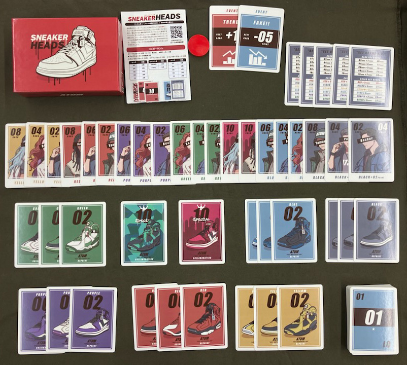 人気ブランドのスニーカーをオークションで競り合い、時にはリセールし、最終的なポイント(満足度)を競うゲームです。