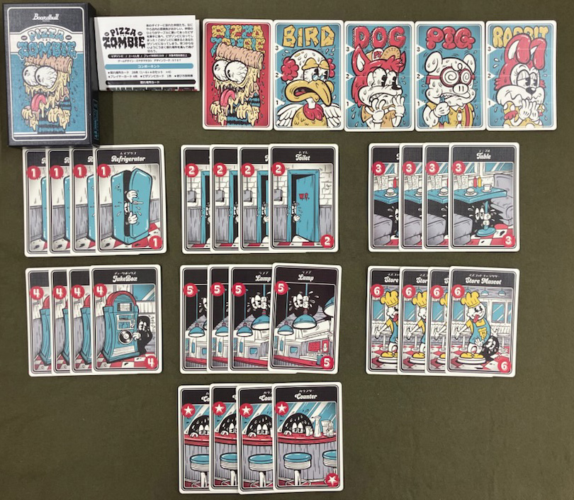 ラウンド終了時にあらかじめ伏せておいたカードをオープンし、それが得点となります。ただしピザゾンビと同じカードを伏せてしまっていた場合はその分だけ得点がマイナスとなります。