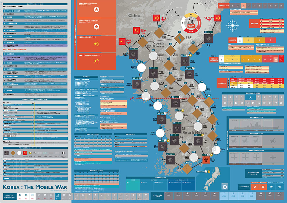 本作は朝鮮戦争における1950年6月から1951年6月までの1年間に起こった戦いを戦略レベルでプレイすることができます。朝鮮半島内の全ての都市スペースを失うとサドンデスで敗北するため、前半は如何に増援を待ち手元のリソースを上手くやりくりしながら戦線を立て直すことが重要になります。歴史と同じく「反撃」のタイミングが見つかれば、一気に攻勢に転じることになりますが、中国義勇軍やソビエト空軍の介入により困難な状況が立ちはだかることになります。